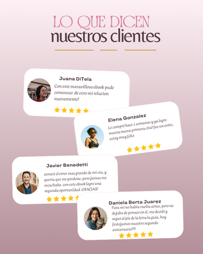 "Ambos libros son reveladores y prácticos, te ayudaran a entender y mejorar tus relaciones. Con más de diez años de experiencia en psicoterapia de parejas, puedo afirmar que estos libros son una herramienta invaluable para cualquier persona que busque fortalecer su relación o recuperar el amor perdido. La autora ofrece consejos y estrategias prácticas y accesibles, basados en la experiencia y la investigación. Te hará reflexionar, te motivará y te ayudará a crear la relacion de tus sueños. ¡Los recomiendo sin reservas!"